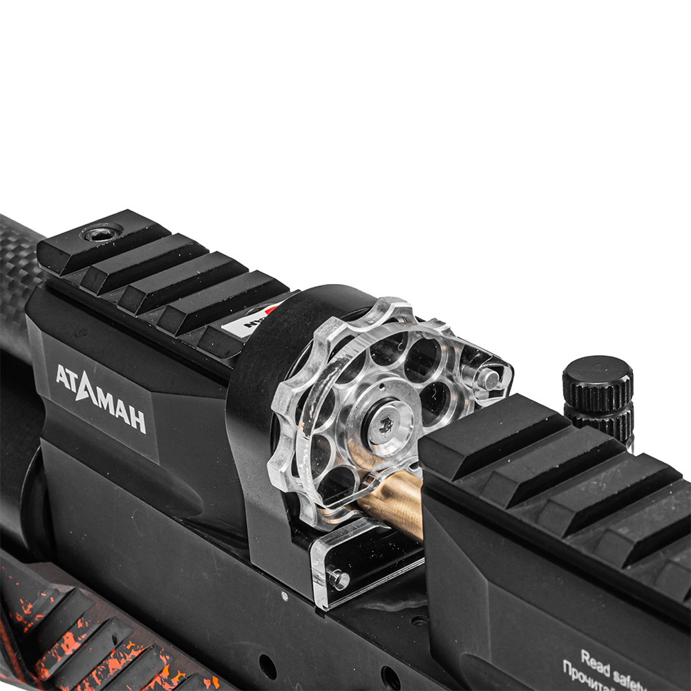 Редукторная система обеспечивает стабильность давления на протяжении всей серии выстрелов, что критично для точной стрельбы полнотелыми пулями. Подствольный баллон объемом 230 мл рассчитан на рабочее давление 300 Атм и обеспечивает до 15 стабильных выстрелов с одной заправки.